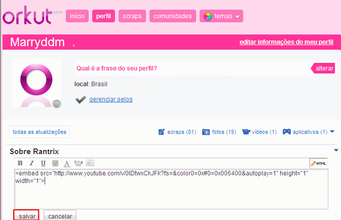 Após ter terminado, clique novamente em perfil e pronto! Você terá música no seu Orkut!